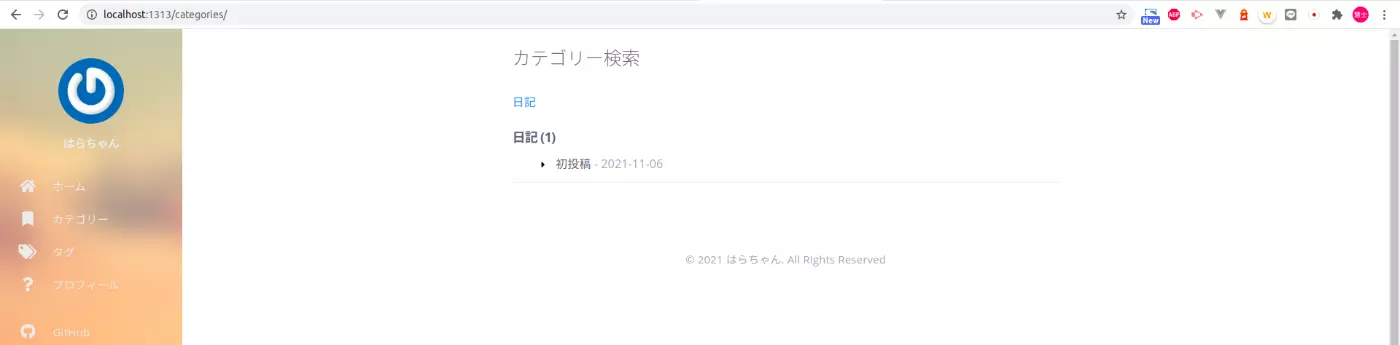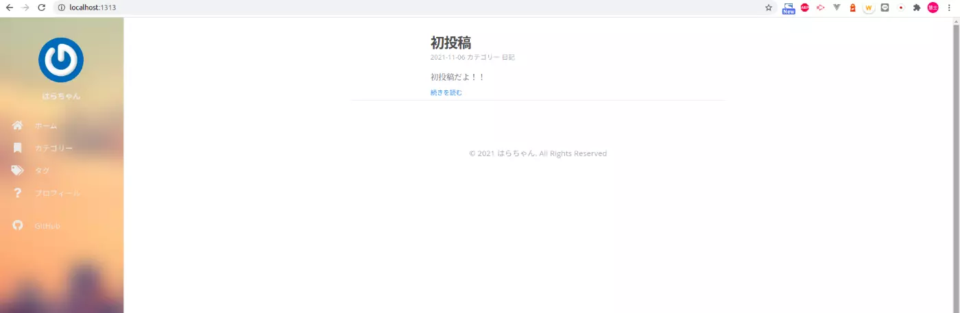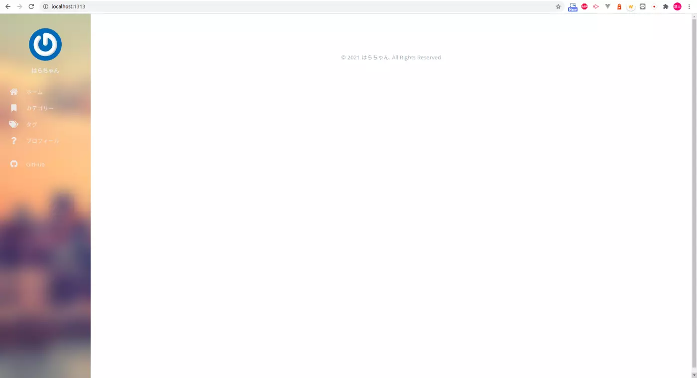 これでhttp://localhost:1313/にアクセスすると以下のように表示されると思います。