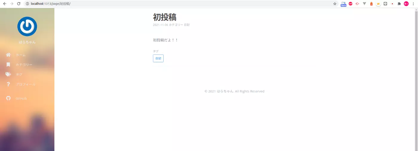 ターミナルで以下のコマンドを打つと、./content/pageに初投稿.mdというファイルが作成されていると思います。