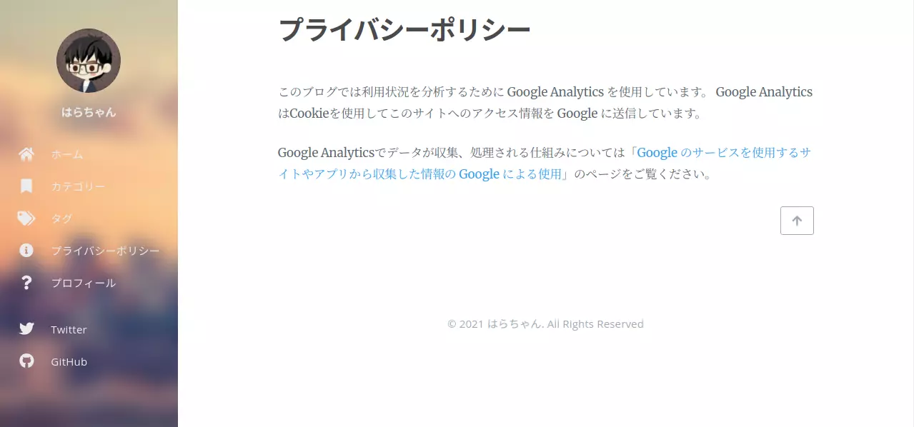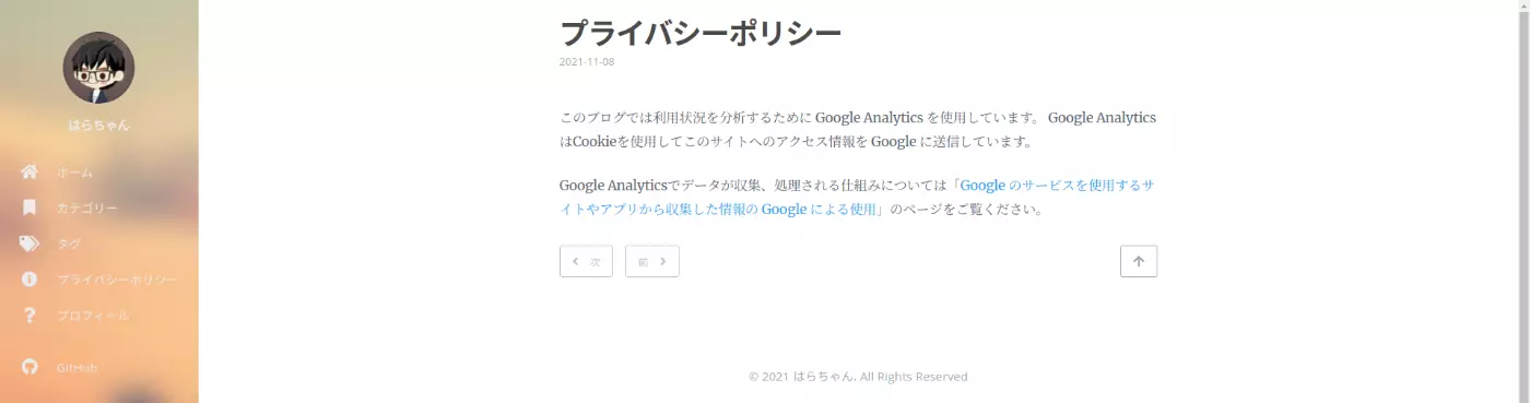 これで、プライバシーポリシーページが追加されたので確認してみましょう。
