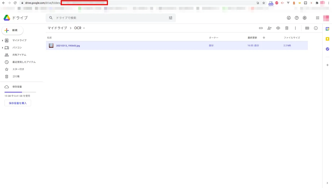 google driveを開き新しくフォルダを作成してOCRしたい画像をアップロードしておきます。